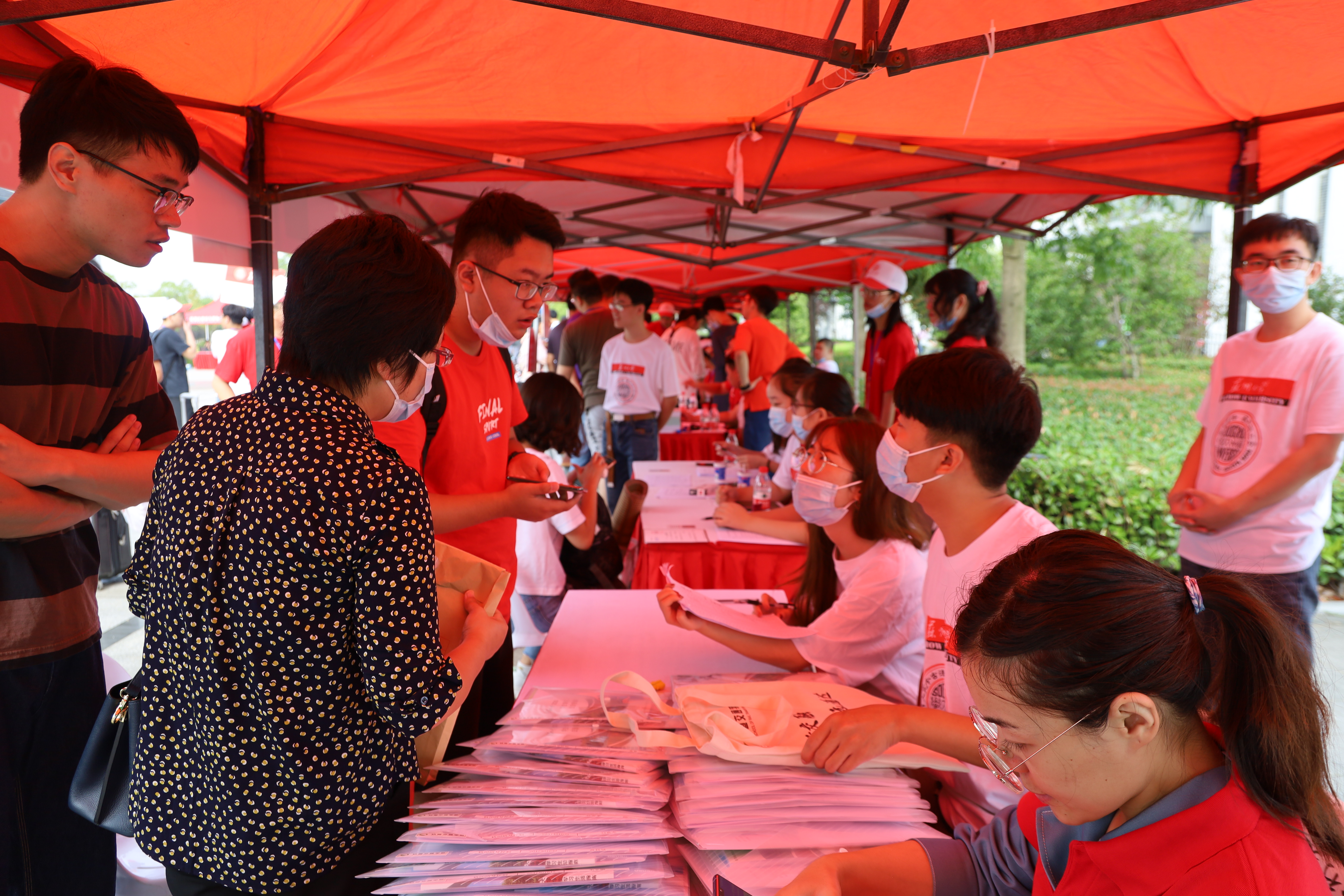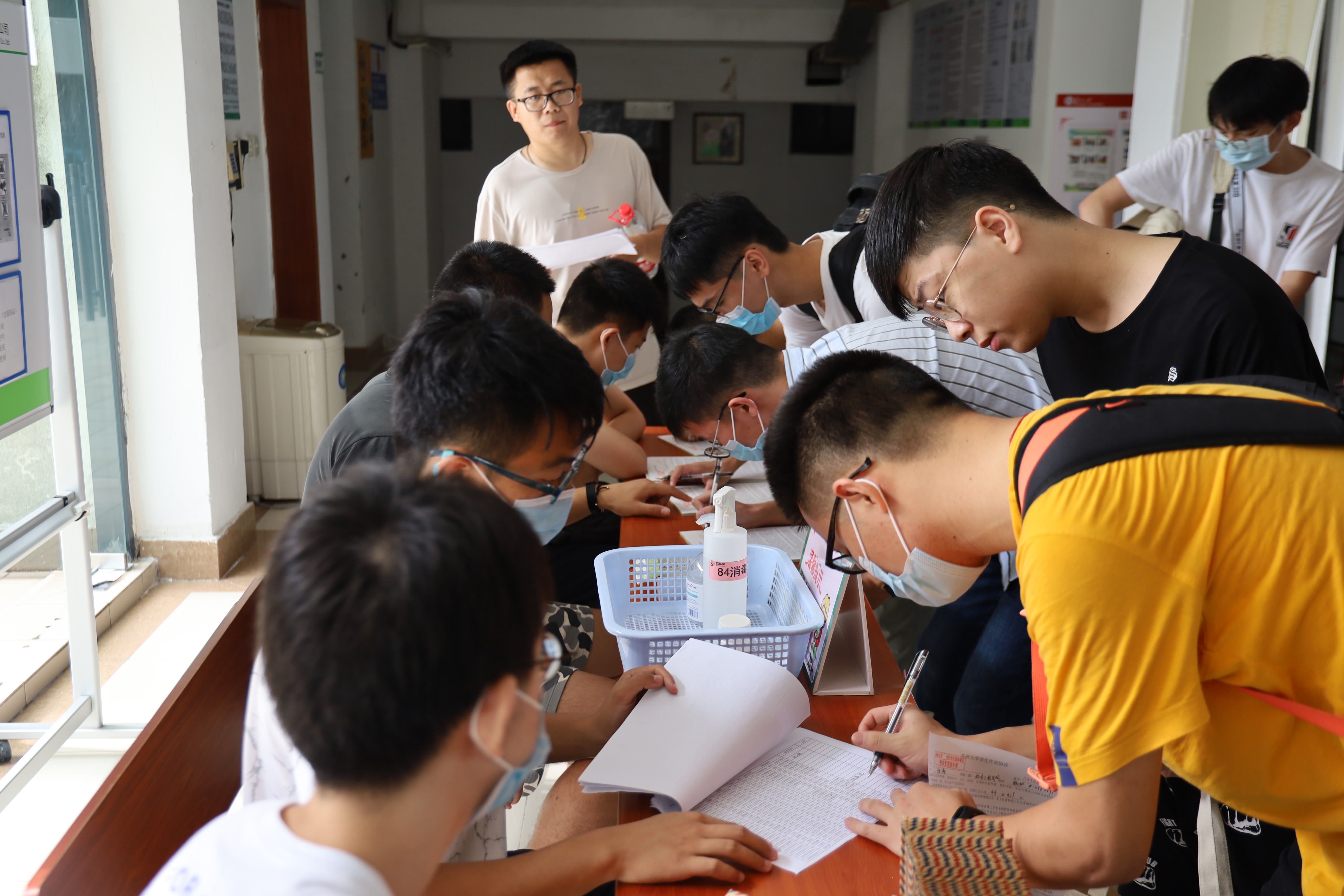 从早上6:30开始,新生们开始陆续到学校报到,整个迎新活动我们有一套完整流畅的服务流程。从学校门口的接待指引到迎新摊位前的签到向导,迎新摊位扫码报到后,查验通知书、苏康码、领取入学材料,之后会有相应的志愿工作者带领新生前往自己的宿舍,并嘱咐相关事宜和注意事项。