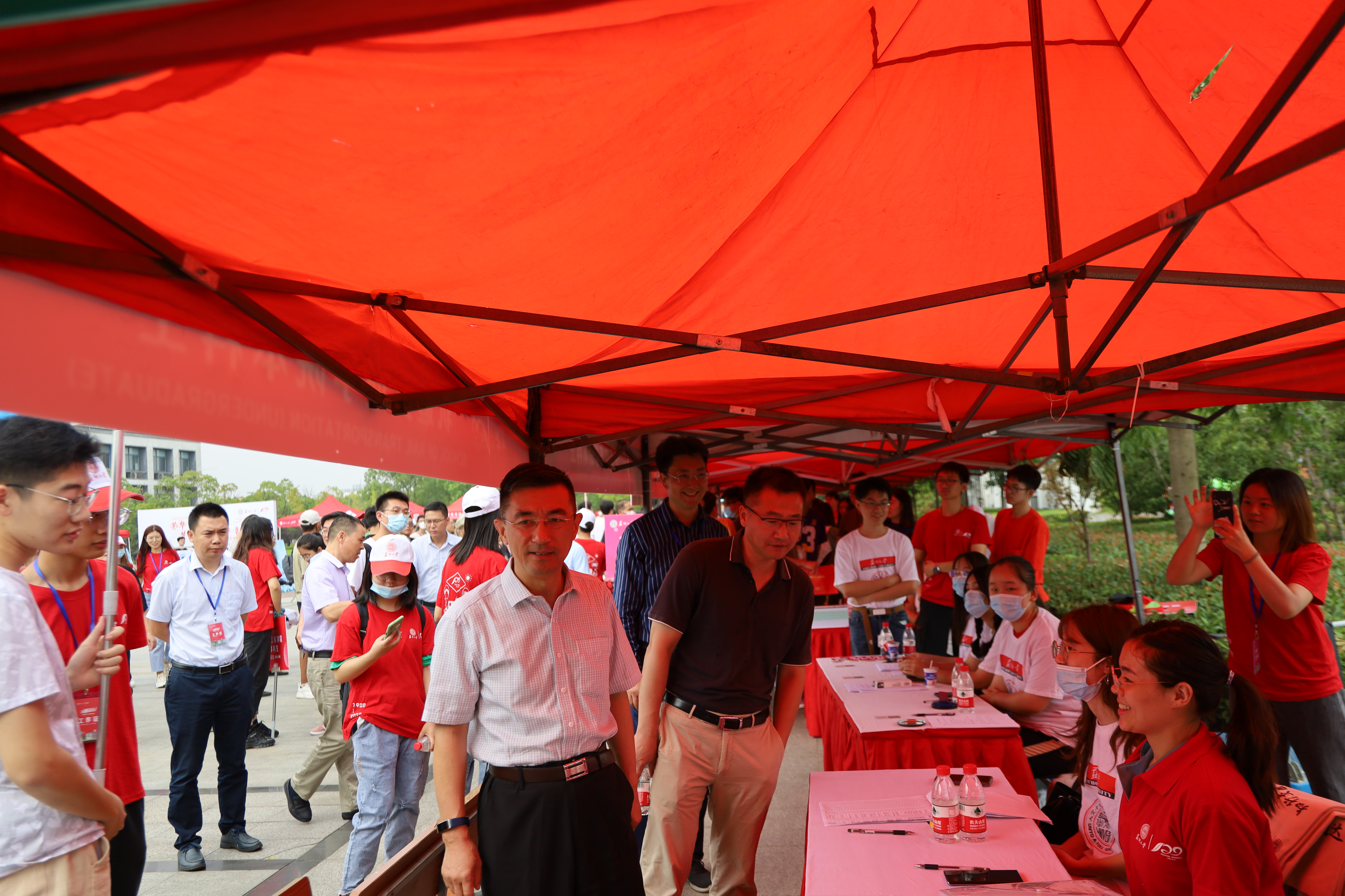 熊思东校长来到了新生报到的现场,苏大学子们都很激动。熊思东校长、院长史培新及副书记副院长黄晓辉一起在报到处和学生家长交流。