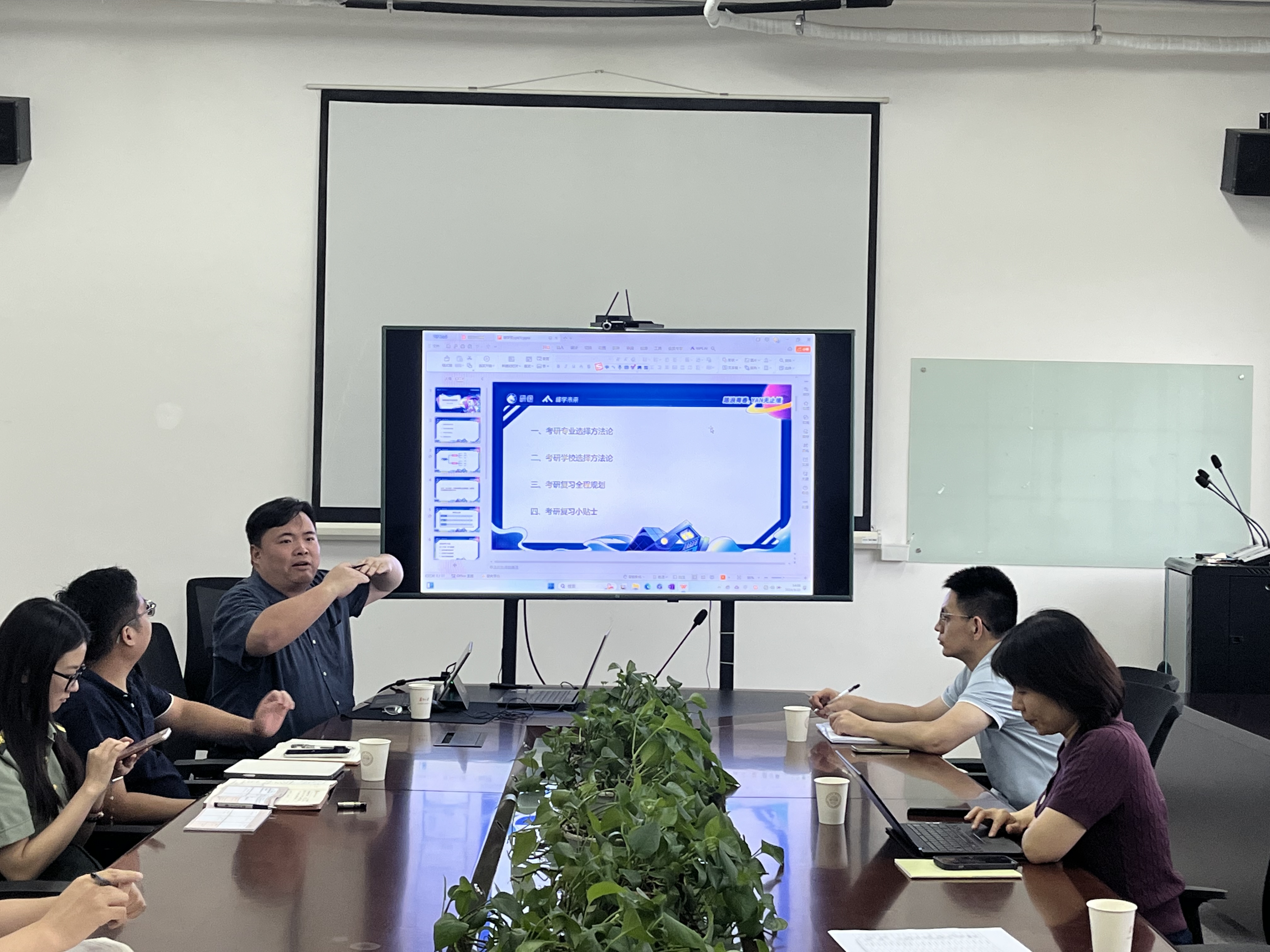 本次本科生高质量发展研讨会,邀请苏州研途教育副校长张雪峰团队核心规划师程大伟老师给学院全体班主任老师做了专题介绍。程老师从专业和学校两个维度,聚焦本专业考研和跨专业考研做了具体分析。同时,从一年级到四年级,每个年级做了重点分析。在课程学习、报考院校等方面做了相关提醒,全体辅导员、班主任受益匪浅。