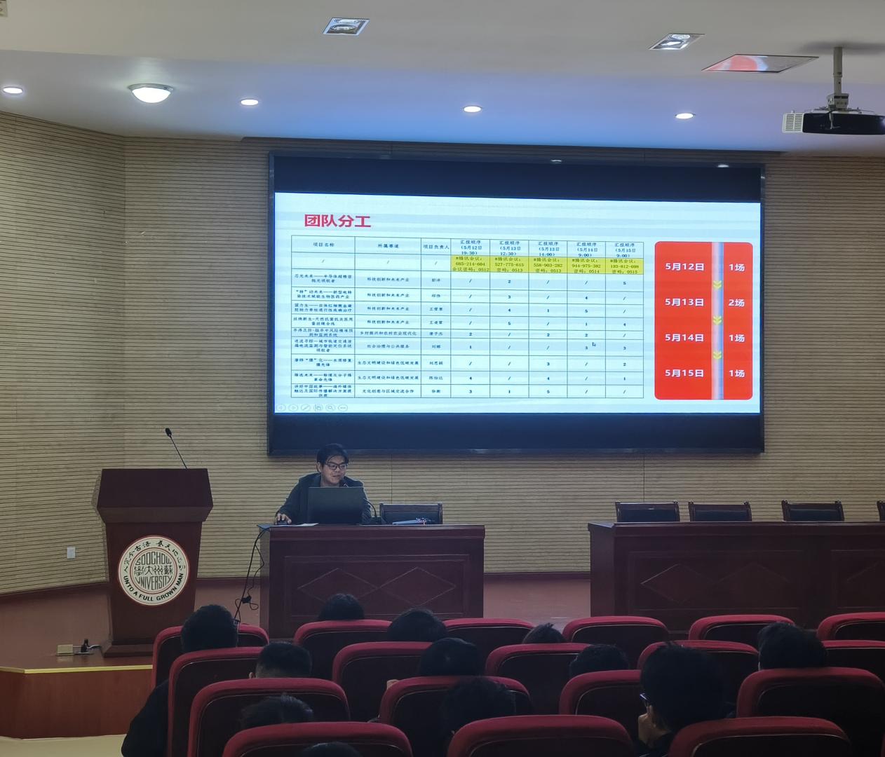 随后,2021级电气工程及其自动化专业的葛雨晨学长先带来了经验分享。首先,他强调比赛时至少一人随身携带电脑。其次,他着重介绍了关于大赛PPT、文档的制作。接着葛学长给大家分享了汇报的一些小技巧,包括赛前练习,还有赛时与评委眼神交流等。最后,他以答辩预设的经验交流进行总结。