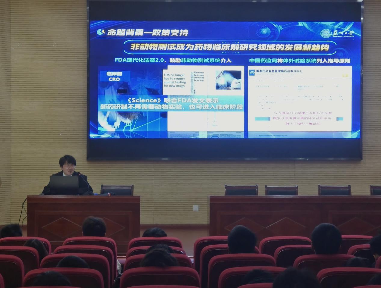 最后,由2022级生物技术专业的蔡黎明学长为我们带来分享。首先,他表明其参加三大赛的初衷是为了创业,重心应放在商业和科研两点。然后,他从“产业命题赛道如何玩?”展开分享了他的备赛过程与亲身经历,并且展示了他打比赛时的PPT,可谓干货满满。