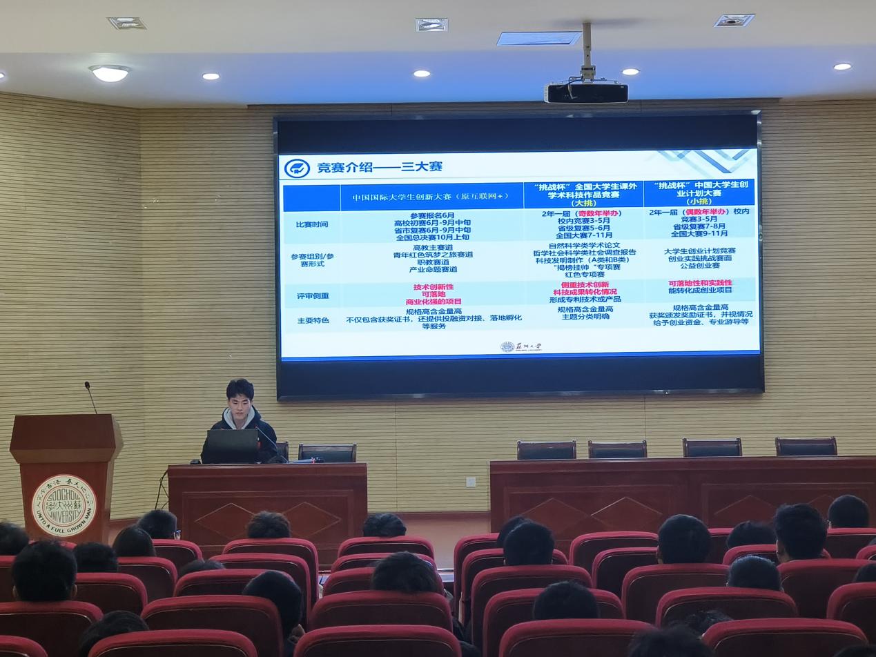 为进一步做好2025年“三大赛”的备赛工作,根据《关于举办2024年“三大赛”经验分享会的通知》(创字〔2024〕148号)等文件精神,2024年11月21日晚,由167net必赢承办的2024年“三大赛”经验分享会(阳澄湖校区专场)在交通大楼二楼报告厅如期举行。本次活动邀请本年度国赛获奖选手:葛雨晨、胡准、蔡黎明三位项目核心成员参与。