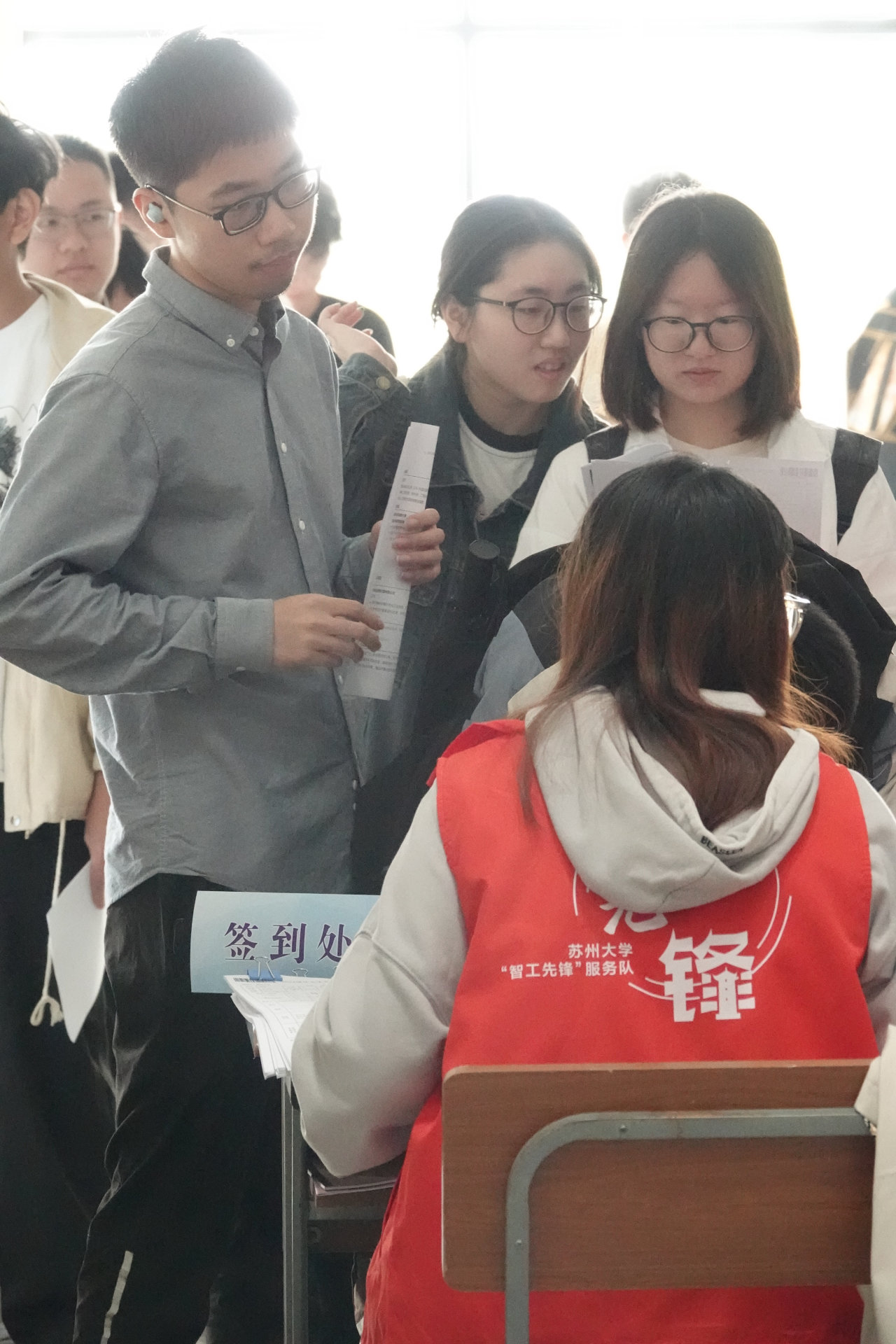 不管是在单位到达前的短信提醒、到现场后的温馨卡片,还是在场地中维护秩序、进行场地引导等,智工先锋志愿者全程用心做好全程服务,确保招聘会顺利开展。