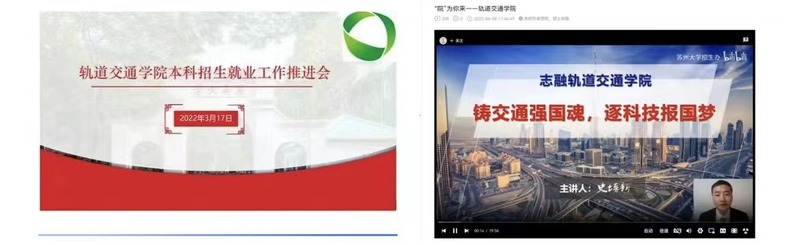 学院高度重视招生宣传工作,3月17日召开本科招生就业工作推进会,在全面回顾2021年工作的基础上早动员早布局,明确目标、加强联动,全面拉开2022年本科招生工作序幕。学院党委书记戴佩良、院长史培新担任本科招生宣传工作组组长,党委副书记、副院长胡洋和经验丰富的田雷老师担任副组长,组建了一支以学院党政领导、专任教师、辅导员为主要力量、学生骨干共同参与的招生宣传队伍。以“铸交通强国魂,逐科技报国梦”为主题,细致谋划,挖掘特色,精心编制学院2022年本科招生宣传素材,学院院长史培新教授录制“院为你来”学院专业介绍直播,充分利用新媒体进一步提升学院影响力,提升生源质量。