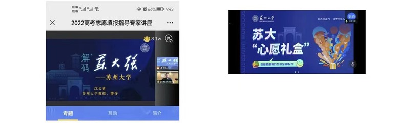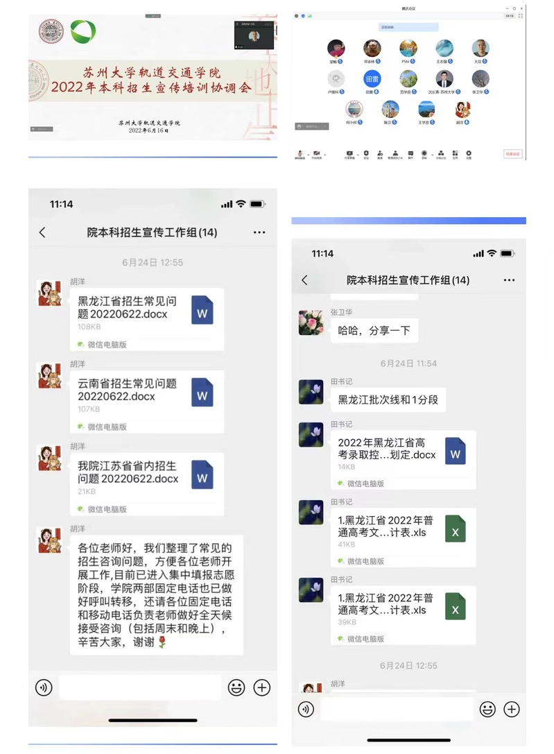 在线上招生宣传工作中,我院沈长青老师于6月10日、6月24日开展两次线上直播,田雷老师于6月25日针对黑龙江省考生进行线上宣讲,全面介绍了苏大的招生政策、学校优势、报考指南、就业升学前景等,吸引广大优质生源选择苏州大学。同时,学院6名老师向云南省、黑龙江省考生提供一对一电话咨询、志愿填报指导,安排专人做好学院QQ群家长考生咨询,并向10余所生源重点中学邮寄招宣资料。同时,学院招生宣传固定电话安排专人接听,周末晚上服务不打烊,以多点发力全面保障招生宣传工作顺利开展。