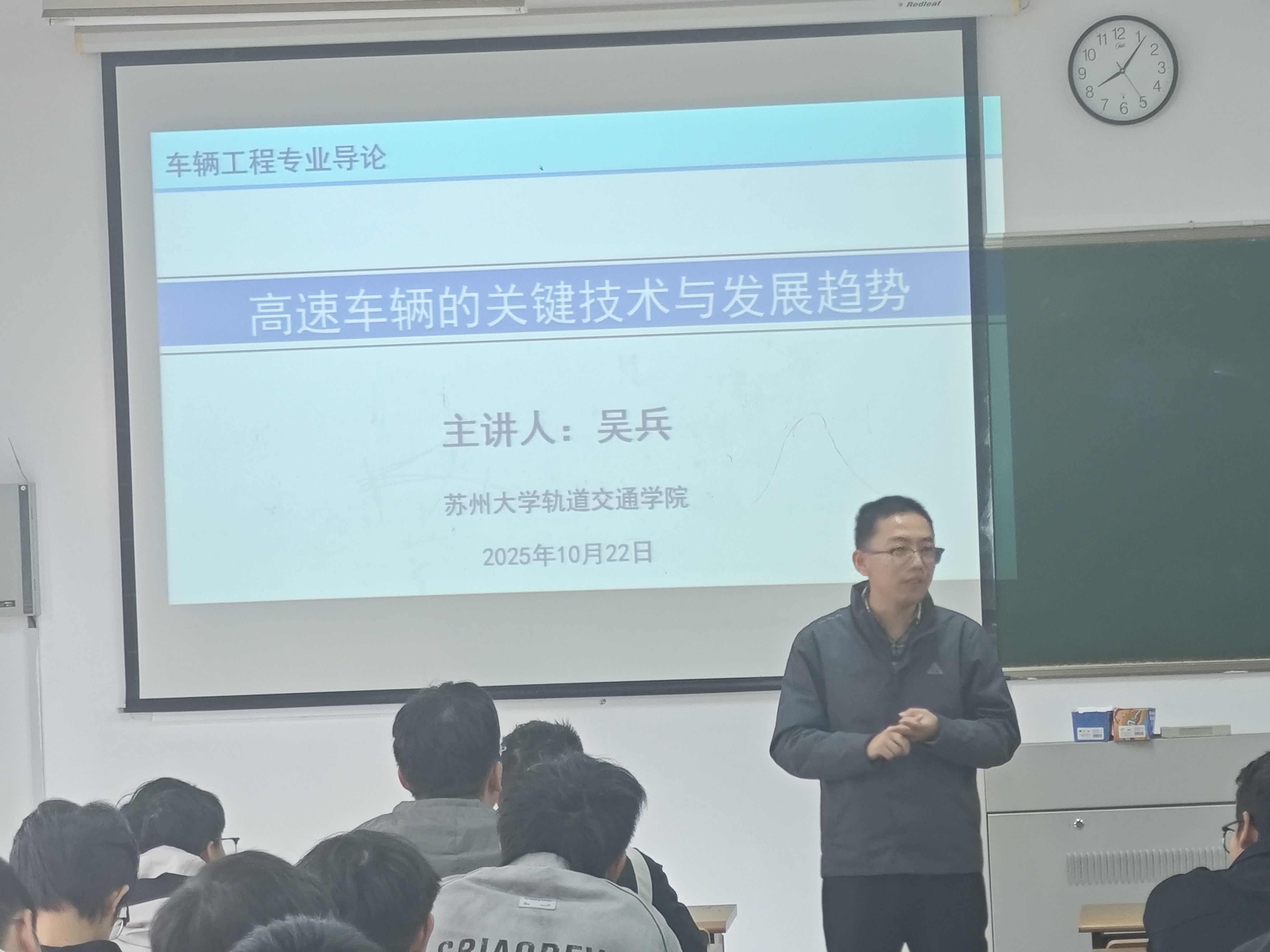 吴兵老师带来的《高速车辆的关键技术与发展趋势》专业前沿讲座,为同学们搭建了深入了解轨道车辆领域的桥梁。讲座以“高铁是我国装备制造的亮丽名片”为切入点,系统梳理我国轨道交通的发展成就。在关键技术板块,吴老师重点解读高速动车组的九大核心技术,包括牵引传动、制动控制、车体材料等,结合具体案例剖析技术突破难点,如轻量化车体如何平衡强度与能耗,牵引系统如何实现高效动力输出。发展趋势方面,既介绍了世界高速铁路向更高速度、更智能运维、更绿色环保迈进的方向,也详细阐述了CR450科技创新工程等重点任务。整场讲座不仅深化了同学们对专业知识的认知,更激发了大家投身高速车辆核心技术攻关、助力行业高质量发展的志向。