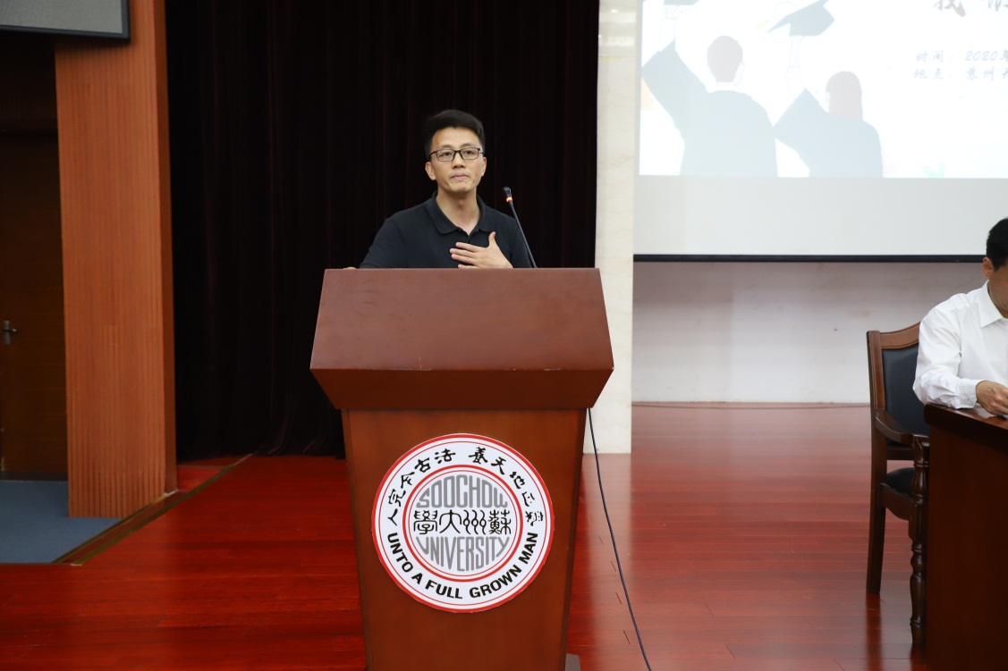 2020年6月26日下午14:00,167net必赢2020届本科生毕业典礼在苏州大学阳澄湖校区图书馆大报告厅举行,出席本次毕业典礼的领导有院长史培新老师,院党委书记唐文跃老师,副院长肖为周老师,副院长金菊华老师,本次毕业典礼由院党委副书记、副院长黄晓辉老师主持,各系、实验室主任、副主任,院学工办、团委,以及毕业班班主任、全体本科毕业生出席了此次典礼。