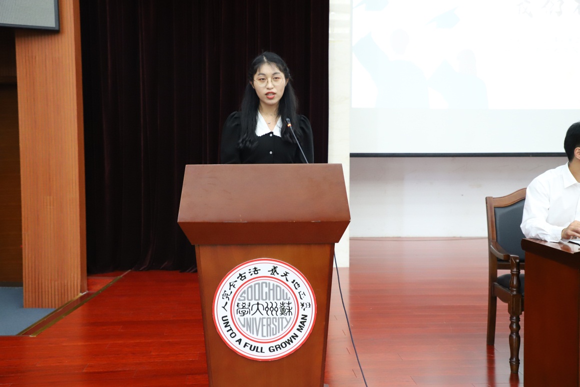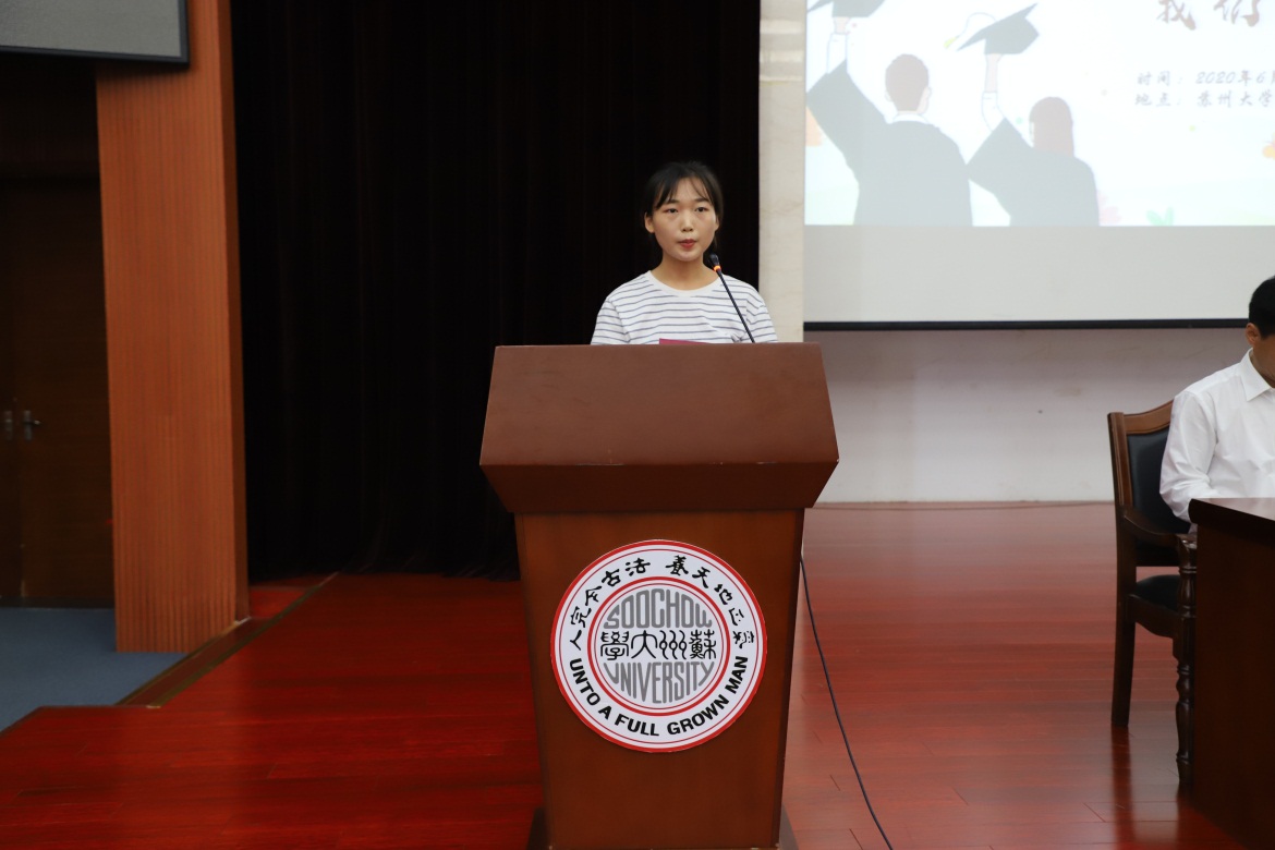 本科生在校代表王可馨上台发言,她回忆了与学长学姐相处的美好时光,表达了对学长学姐的感谢和美好祝愿。