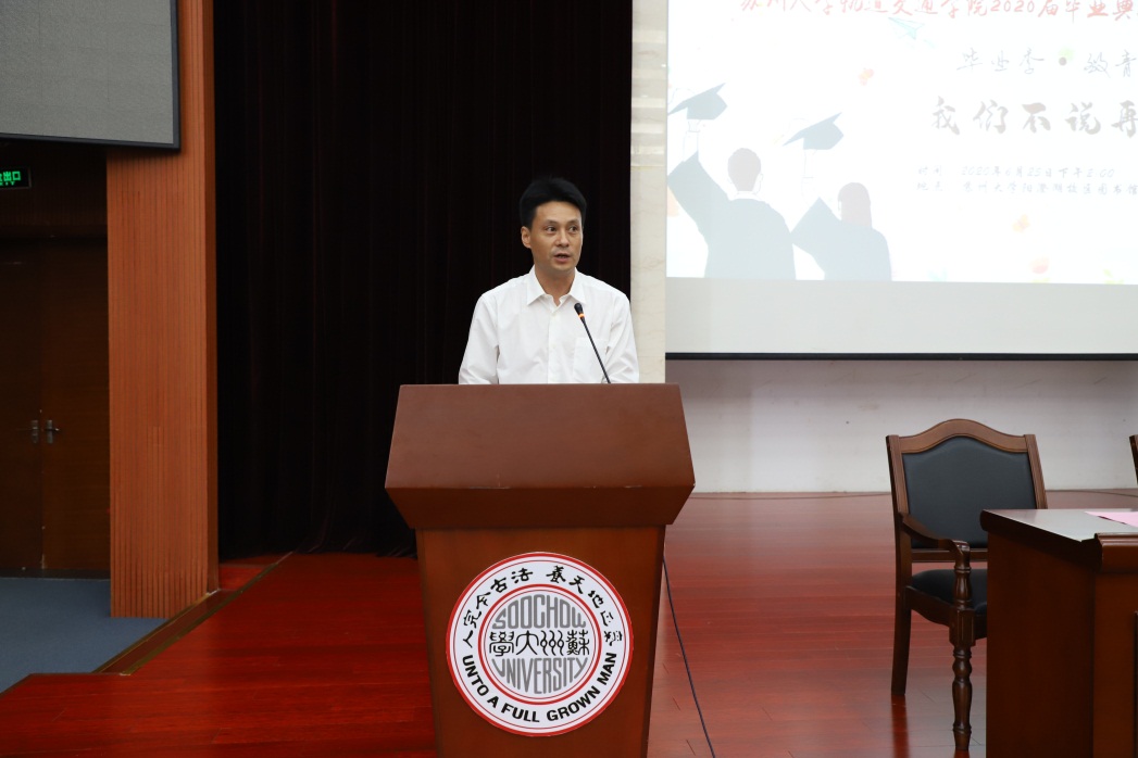 随后,教师代表郑建颖老师上台发言,郑老师表达了对同学们四年大学生活的赞扬与肯定,祝贺同学们顺利毕业,言语间都是对同学们的祝愿与不舍,他表示:学院的大门永远对毕业生们敞开,欢迎大家常回来看看。