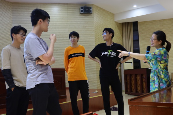 之后王老师向同学们讲述了如何克服害羞,重新认识自己,不必去害怕它,并以一个全体参与的积极自我暗示再次调动气氛。