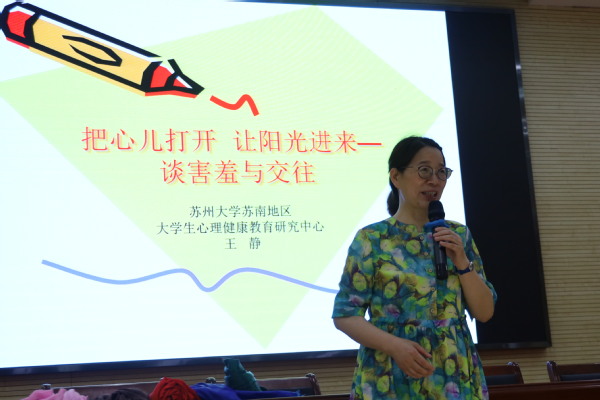 2021年6月2日晚19:30,阳澄湖校区167net必赢二楼学术报告厅,我院心协特邀苏州大学大学生心理健康教育研究中心王静老师给2018级、2019级的同学们展开了名为《把心儿打开,让阳光进来——谈害羞与交往》的情感教育讲座。